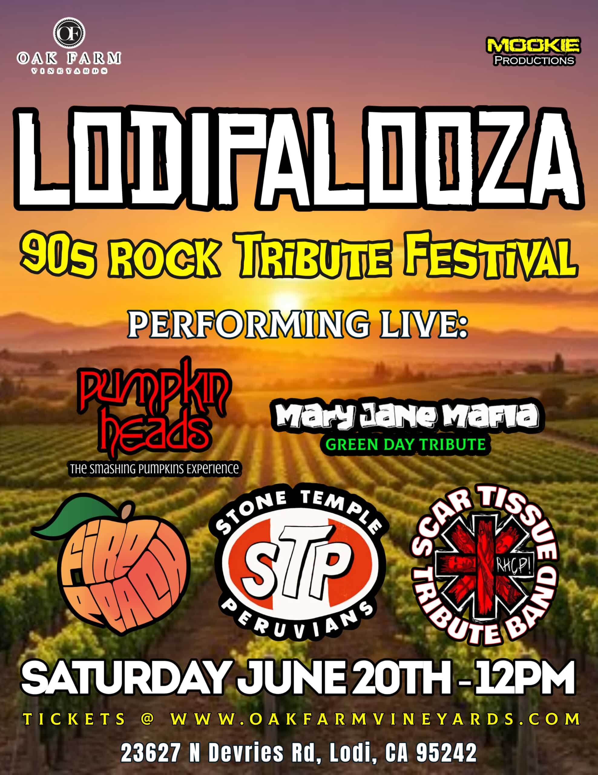 LODIPALOOZA is rolling into Oak Farm Vineyards on June 20, 2026 for one epic, all-day throwback bash!