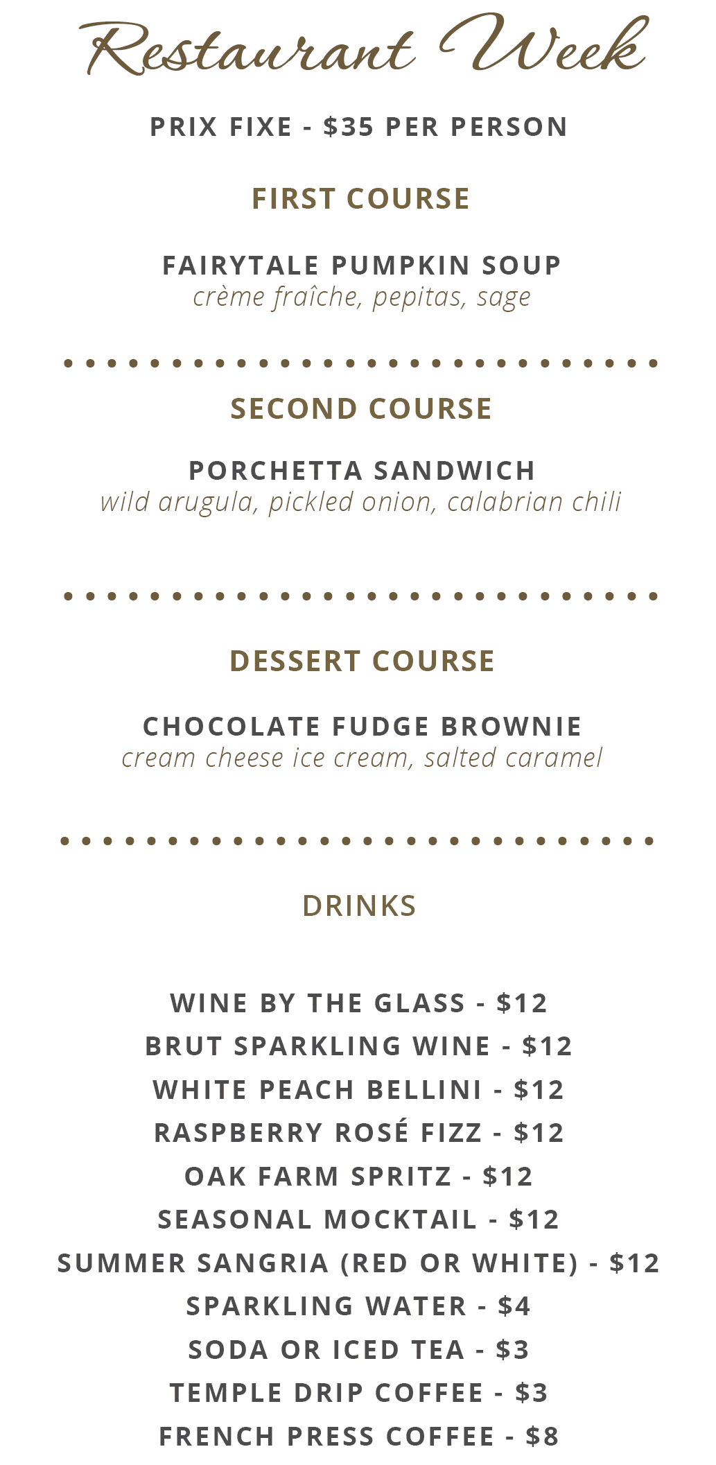 We will be offering our regular full menu as well as a special Prix Fixe menu: