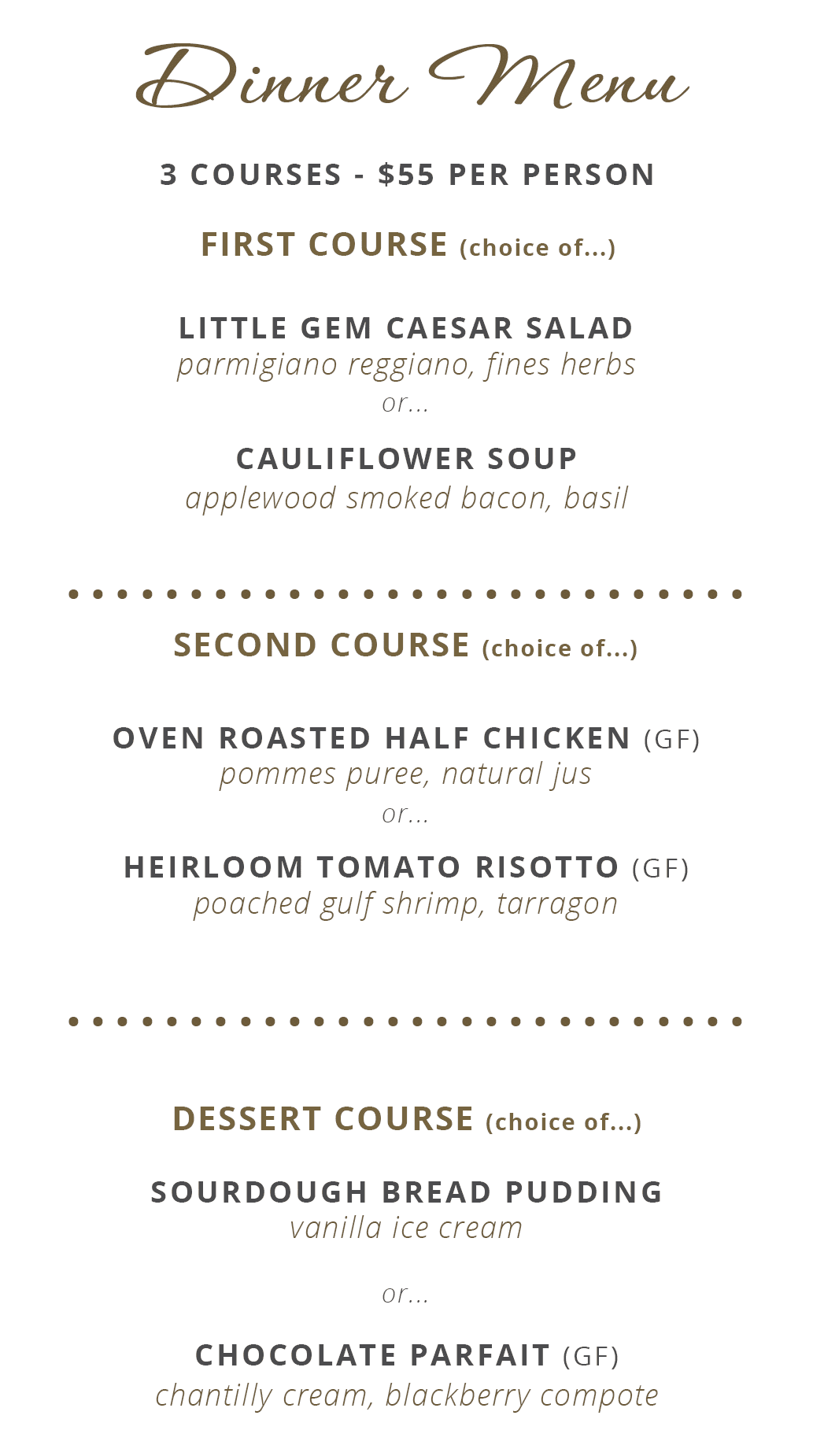 Sunday November 16th, join us for a thoughtfully curated three-course Prix Fixe menu, featuring two delicious options for each course. It’s the perfect way to wind down the weekend with great food and wine in a beautiful setting.
