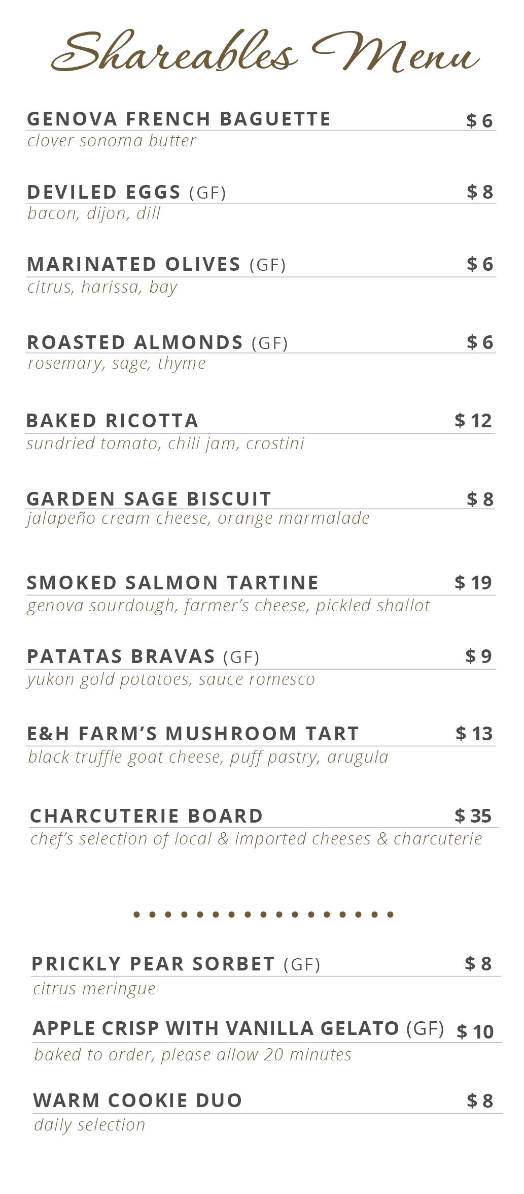 Below is our current shareables menu: