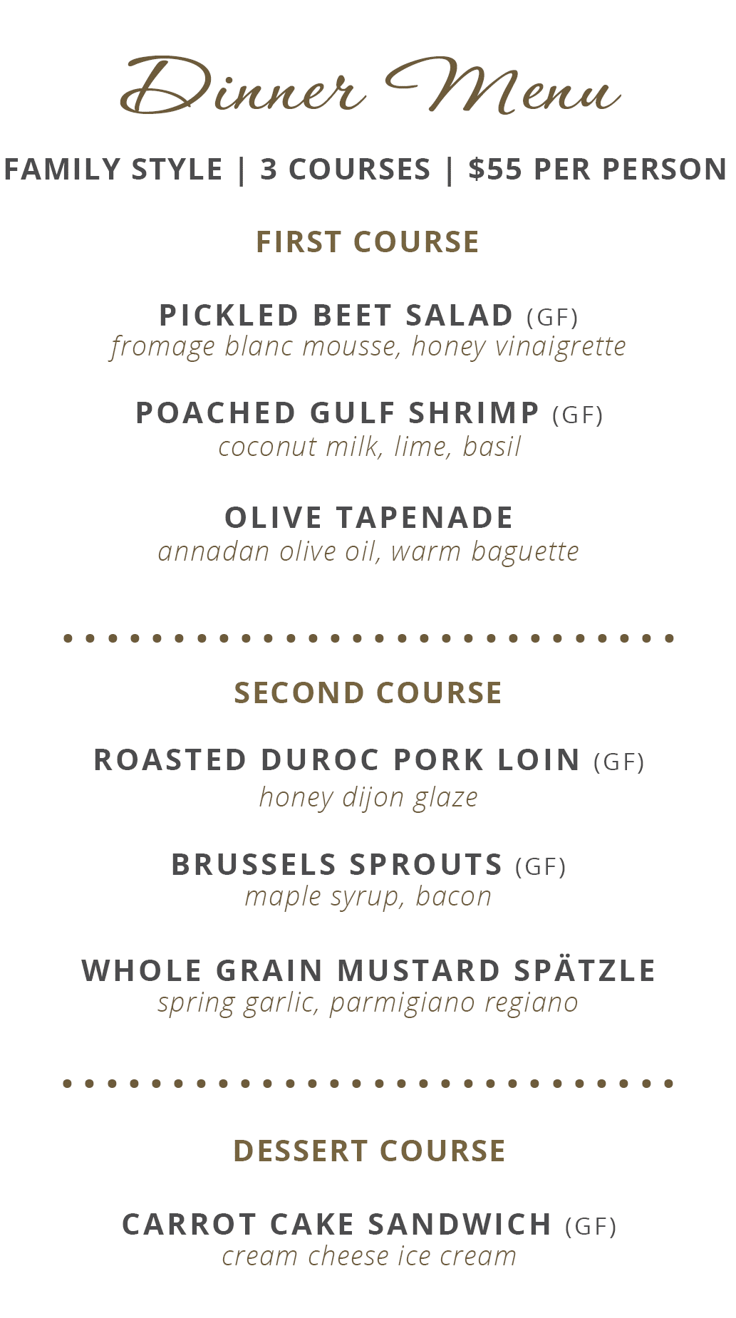 Make your trip to Oak Farm Vineyards truly unforgettable by enjoying a laid-back family-style dining experience in the heart of Lodi wine country. We offer dinners on Sunday evenings, the menu changes every week, and each menu is thoughtfully designed to complement our wines.